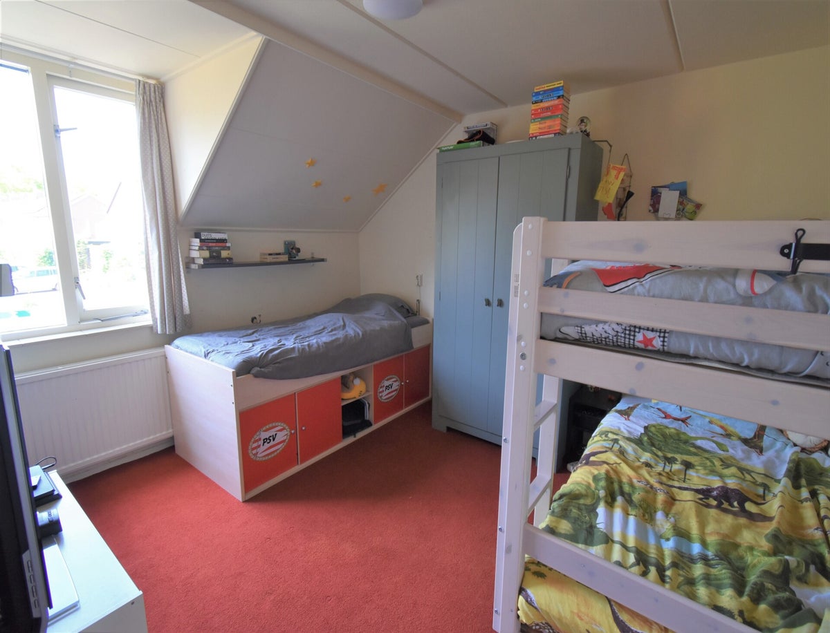Via de trap in de hal bereiken we de overloop met een handige inbouwkast. De badkamer is gelegen aan de voorzijde van woning en voorzien van een douchecabine, toilet en wastafelmeubel. Naast de badkamer is een royale slaapkamer gelegen en aan de achterzijde van de woning bevinden zich nog eens twee slaapkamers. Beide kamers zijn voorzien van een dakkapel met rolluiken, die de kamers extra ruimte en lichtinval geven.