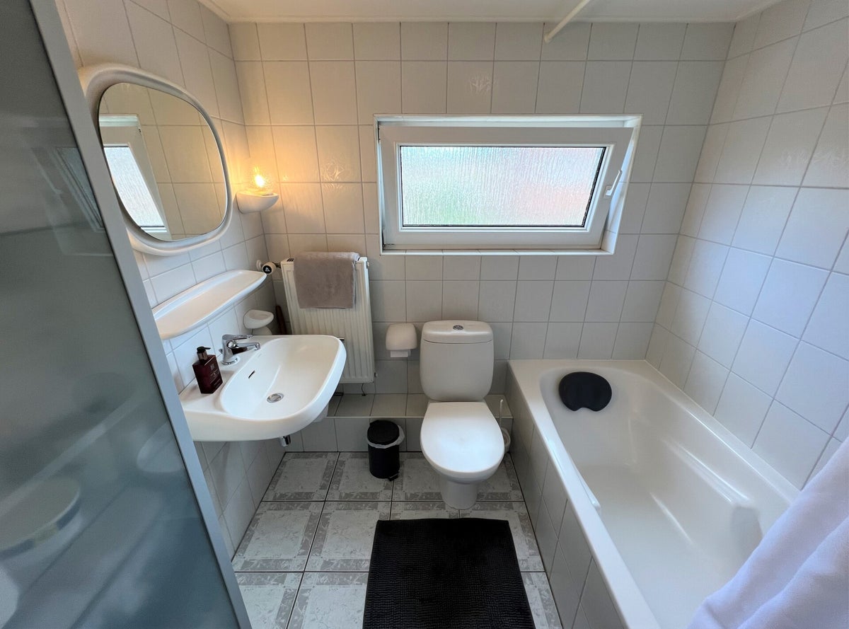 Verdieping: via de trap komen we op de overloop. Deze verdieping beschikt over 3 slaapkamers en een badkamer voorzien van ligbad, douche, wastafel en tweede toilet.