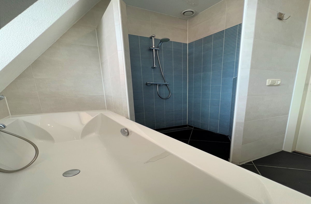 Even terug naar deze prachtige woning. Vanaf de trapopgang in de hal bereiken we de overloop. Op deze eerste verdieping zijn de badkamer en 3 slaapkamers gesitueerd. De modern uitgevoerde badkamer is voorzien van een wastafel, toilet, ligbad, designradiator en een inloopdouche. Kortom een moderne en complete badkamer. De hoofdslaapkamer is aan de voorzijde van de woning gelegen. Deze kamer beschikt over een grote ingebouwde kastenwand. De twee kamers aan de achterzijde van de woning zijn beide te gebruiken als slaapkamer, maar ook zeker geschikt voor het creëren van een werkplek aan huis.